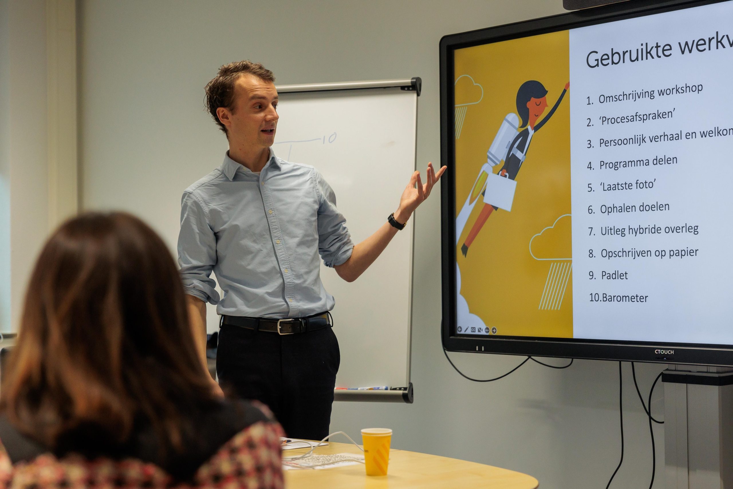 Effectief en Energiek Vergaderen is een praktische training die elke meeting korter, levendiger en doelgerichter maakt. Je leert heldere doelen stellen, eigenaarschap stimuleren en met slimme werkvormen in één klap meer energie en interactie op te roepen — zonder zelf harder te werken. Tijdens de sessie pas je de tools direct toe op je eigen agendapunten, krijg je feedback van peers en een ervaren facilitator, en zet je de stap van overlegmarathon naar betekenisvolle bijeenkomst met vaart.